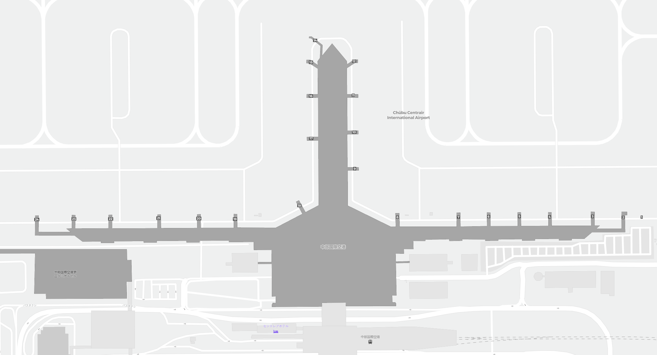 Il s’agit d’une carte zoomable sur Nagoya (NGO). La carte peut vous donner un aperçu de la zone extérieure avec les terminaux, parkings, et dans certains aéroports aussi des détails sur les portes, les agences de location de voitures et autres commodités si vous zoomez.