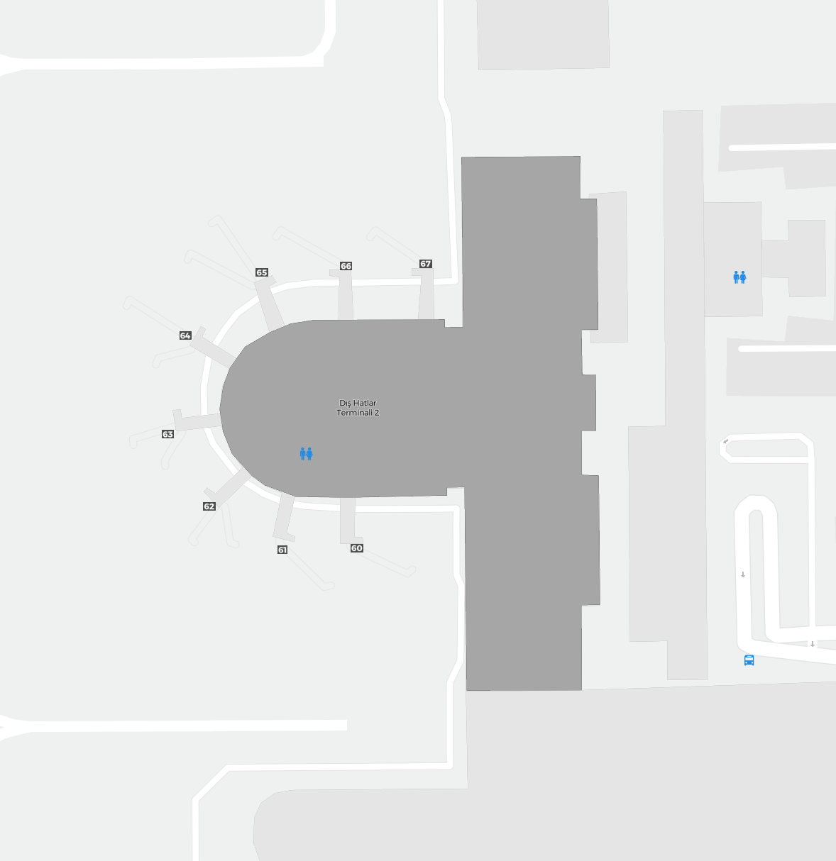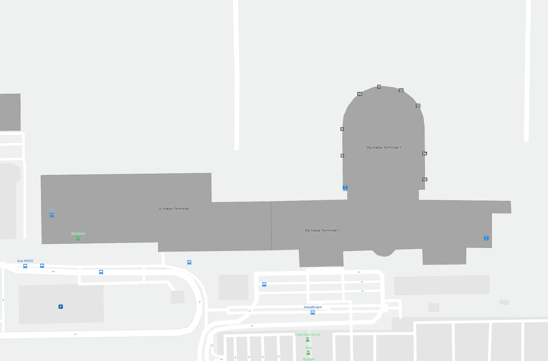 Il s’agit d’une carte zoomable sur Antalya (AYT). La carte peut vous donner un aperçu de la zone extérieure avec les terminaux, parkings, et dans certains aéroports aussi des détails sur les portes, les agences de location de voitures et autres commodités si vous zoomez.
