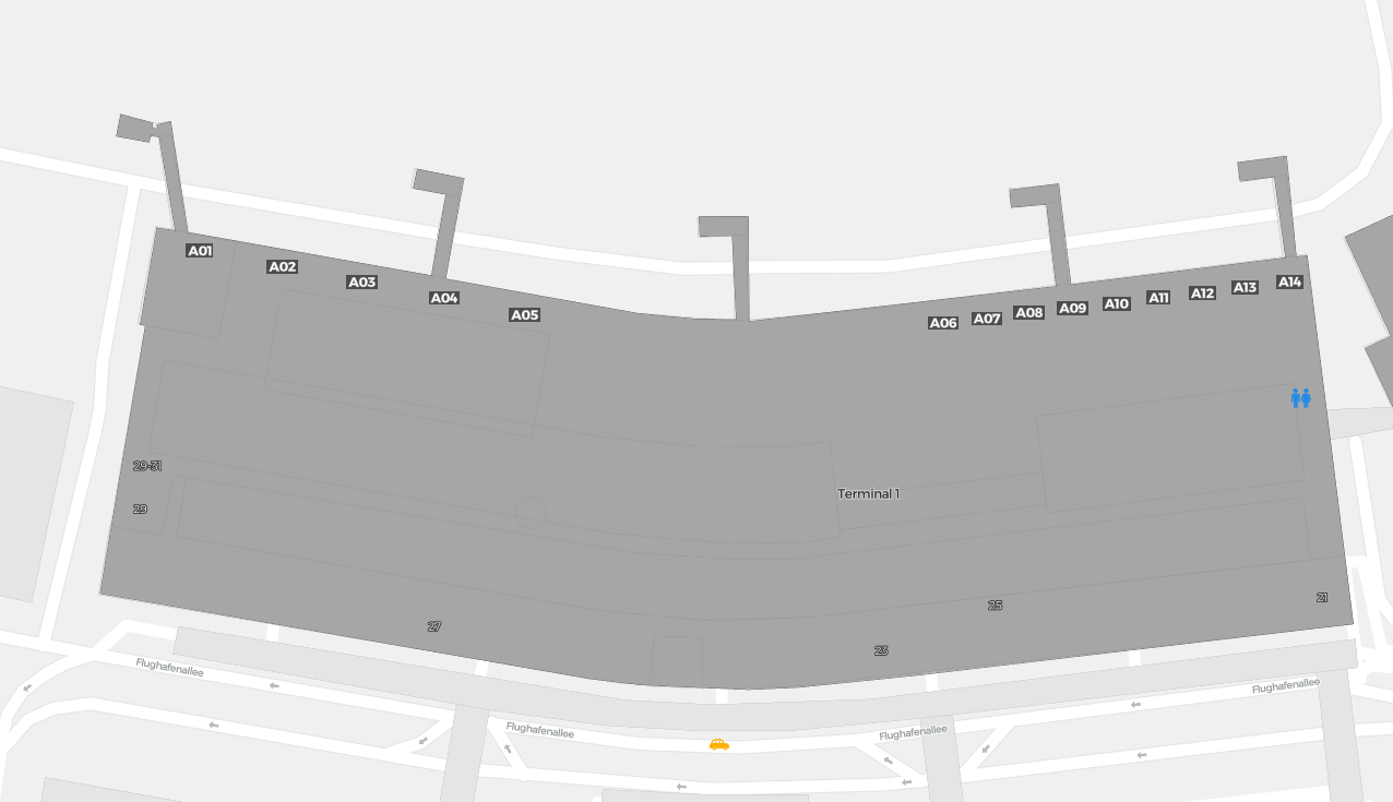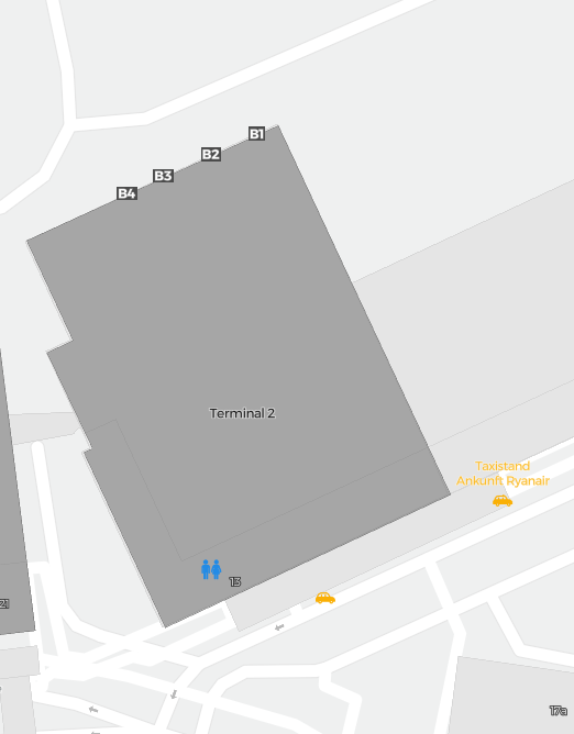Il s’agit d’une carte zoomable sur Brême (BRE). La carte peut vous donner un aperçu de la zone extérieure avec les terminaux, parkings, et dans certains aéroports aussi des détails sur les portes, les agences de location de voitures et autres commodités si vous zoomez.