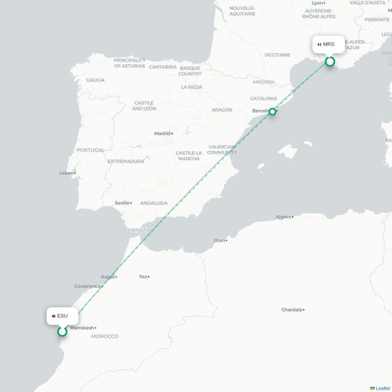 DIRECTEntre Essaouira (ESU) et Marseille (MRS). Liste des companies aériennes opérant ESU-MRS sans escale et les jours de la semaine où elles volent.