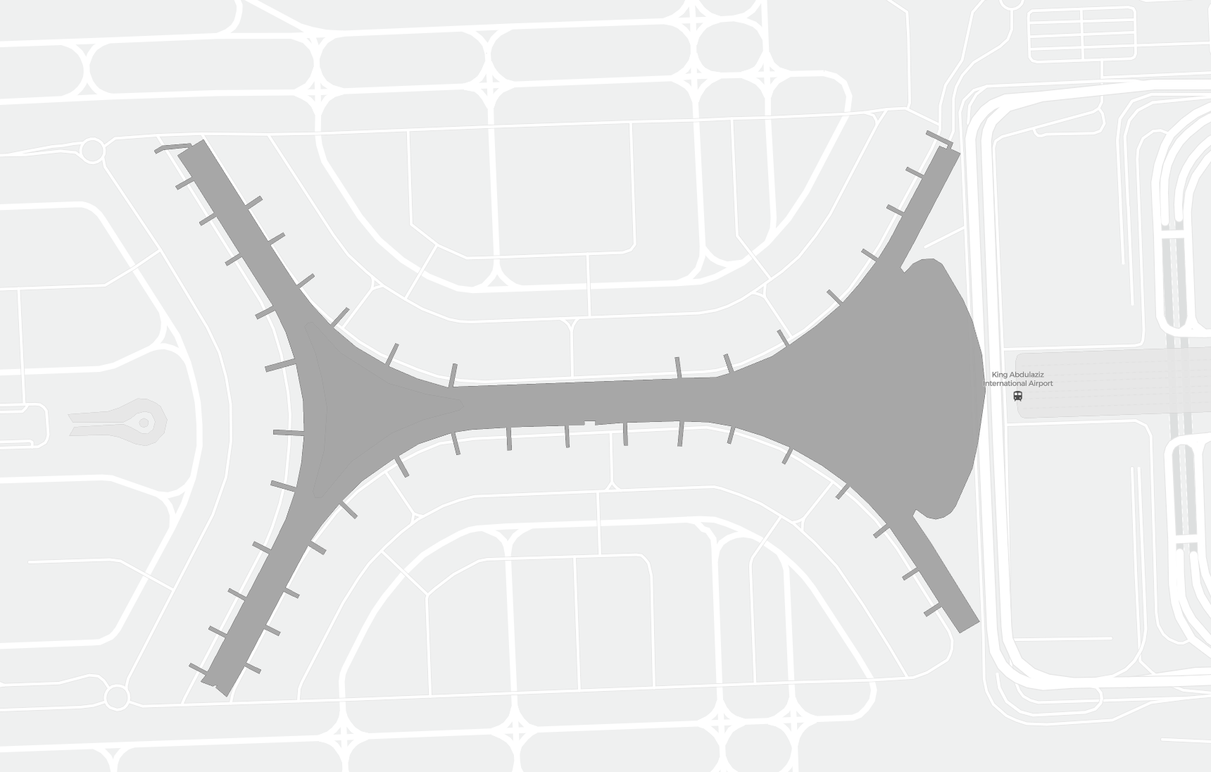 Il s’agit d’une carte zoomable sur Djeddah (JED). La carte peut vous donner un aperçu de la zone extérieure avec les terminaux, parkings, et dans certains aéroports aussi des détails sur les portes, les agences de location de voitures et autres commodités si vous zoomez.