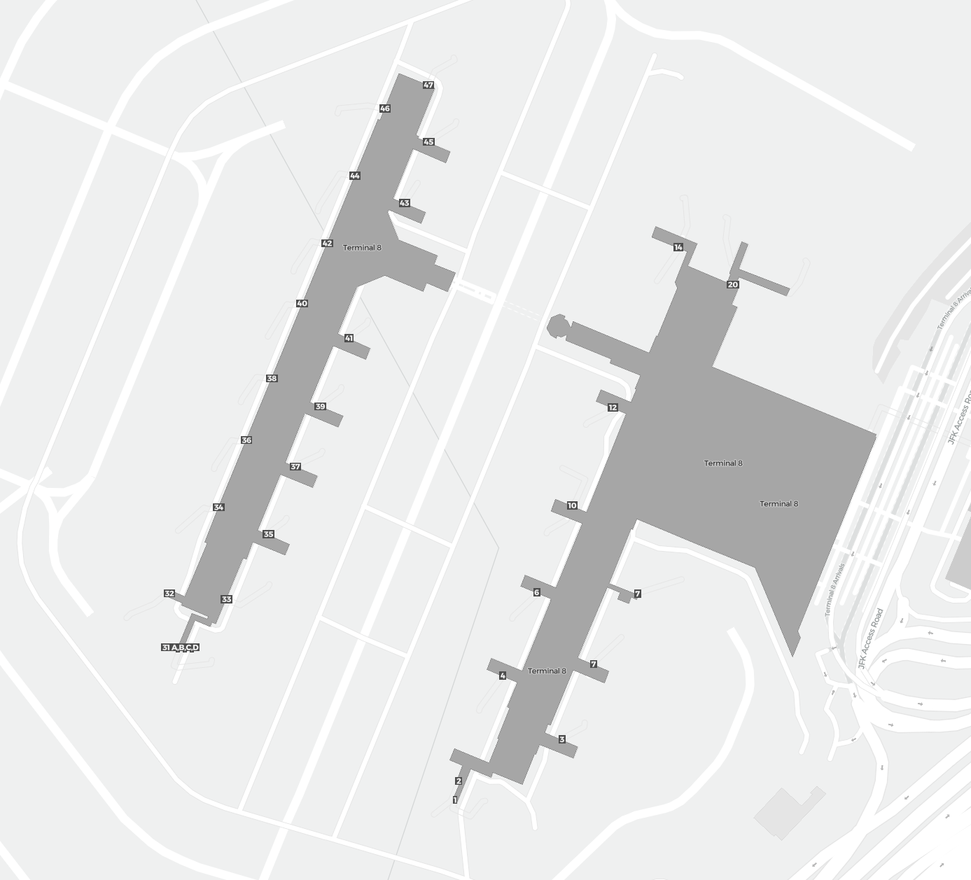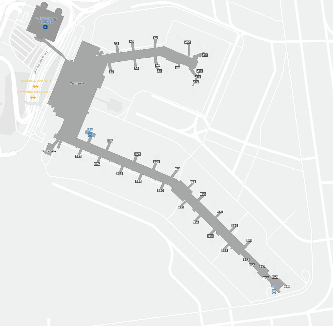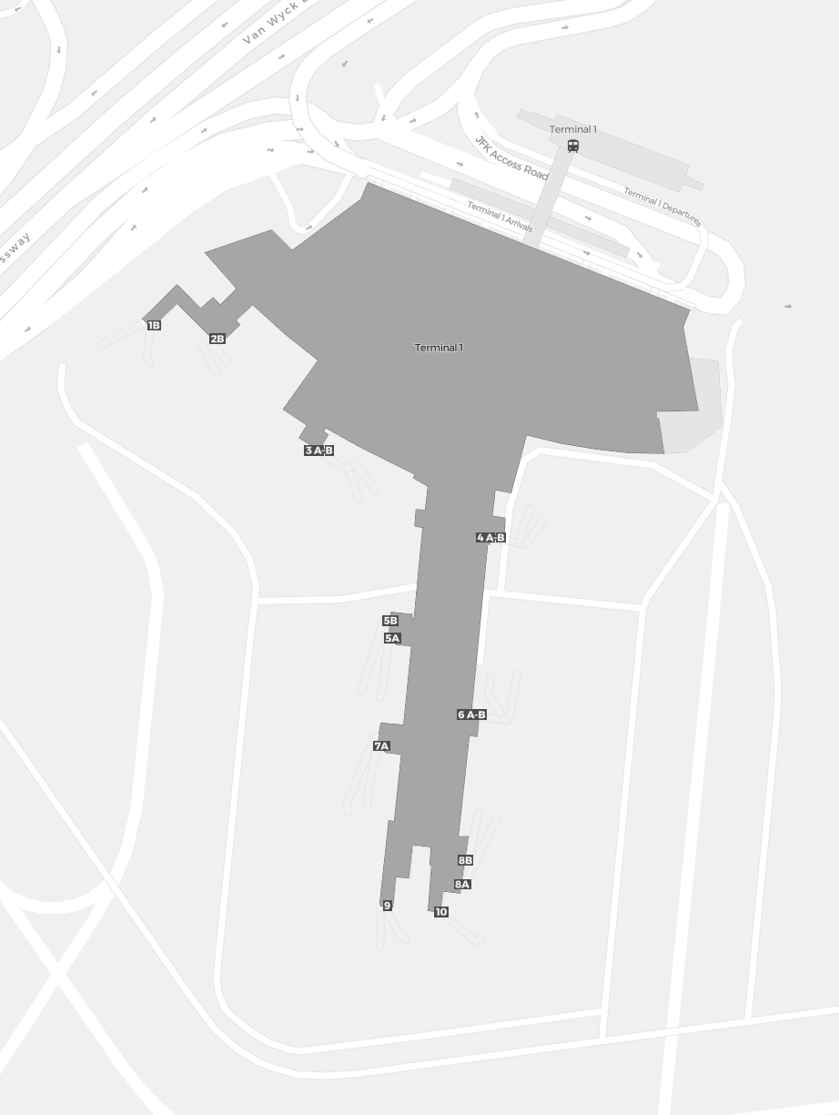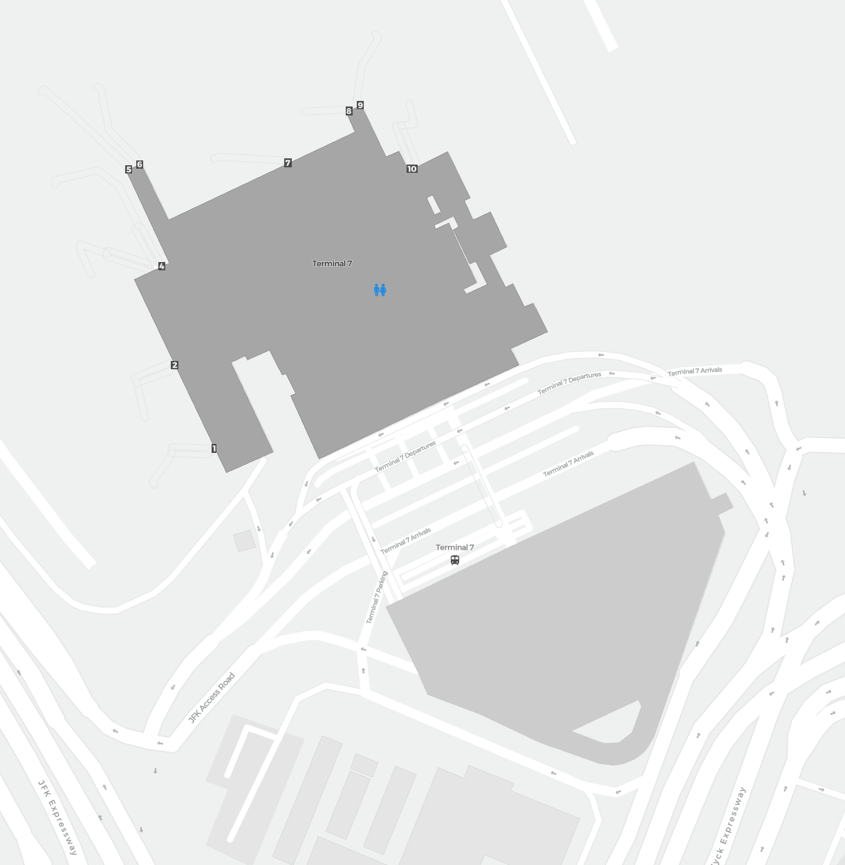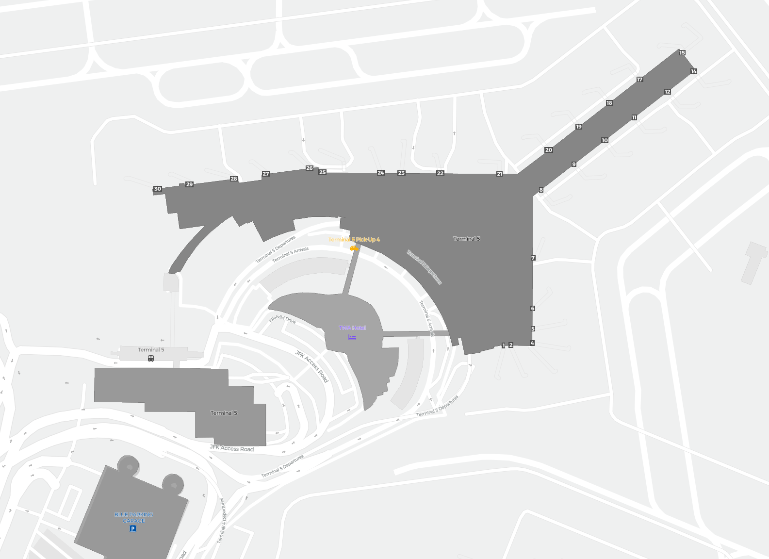Il s’agit d’une carte zoomable sur New York (JFK). La carte peut vous donner un aperçu de la zone extérieure avec les terminaux, parkings, et dans certains aéroports aussi des détails sur les portes, les agences de location de voitures et autres commodités si vous zoomez.