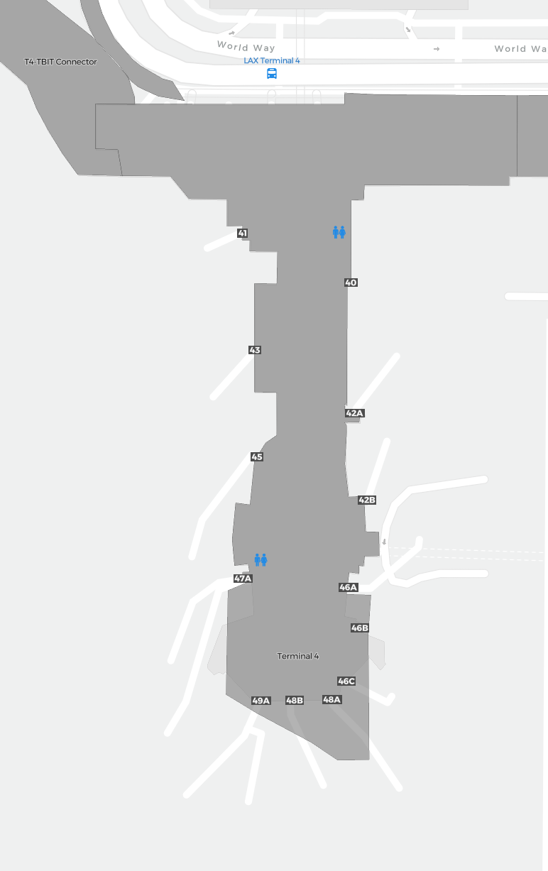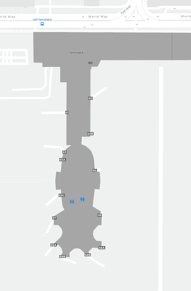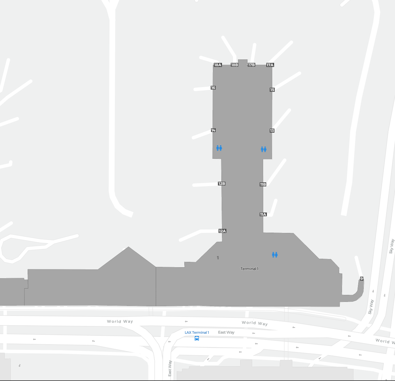 Il s’agit d’une carte zoomable sur Los Angeles (LAX). La carte peut vous donner un aperçu de la zone extérieure avec les terminaux, parkings, et dans certains aéroports aussi des détails sur les portes, les agences de location de voitures et autres commodités si vous zoomez.