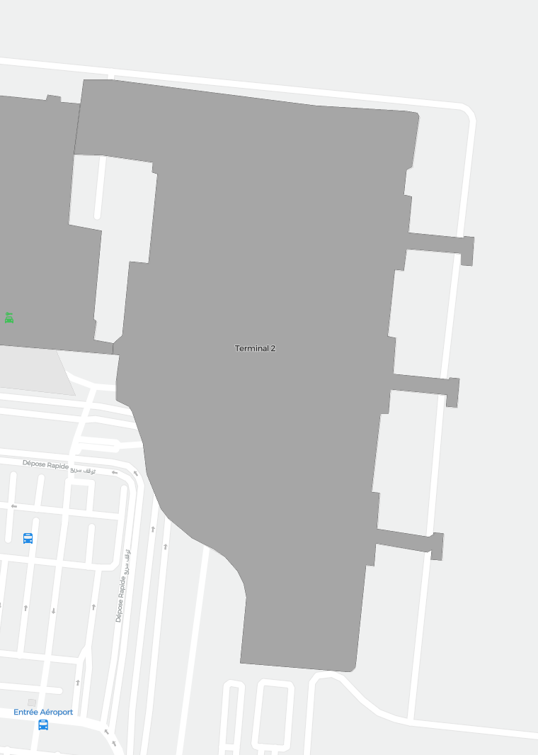 Il s’agit d’une carte zoomable sur Marrakech (RAK). La carte peut vous donner un aperçu de la zone extérieure avec les terminaux, parkings, et dans certains aéroports aussi des détails sur les portes, les agences de location de voitures et autres commodités si vous zoomez.