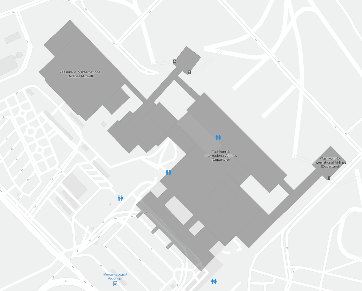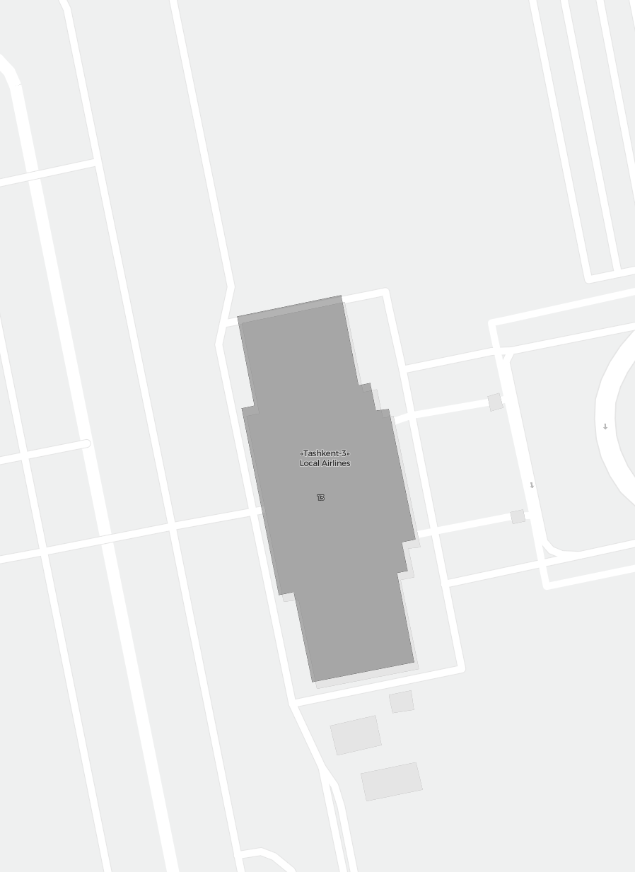 Il s’agit d’une carte zoomable sur Tachkent (TAS). La carte peut vous donner un aperçu de la zone extérieure avec les terminaux, parkings, et dans certains aéroports des détails sur les portes, les agences de location de voitures et autres commodités si vous zoomez.